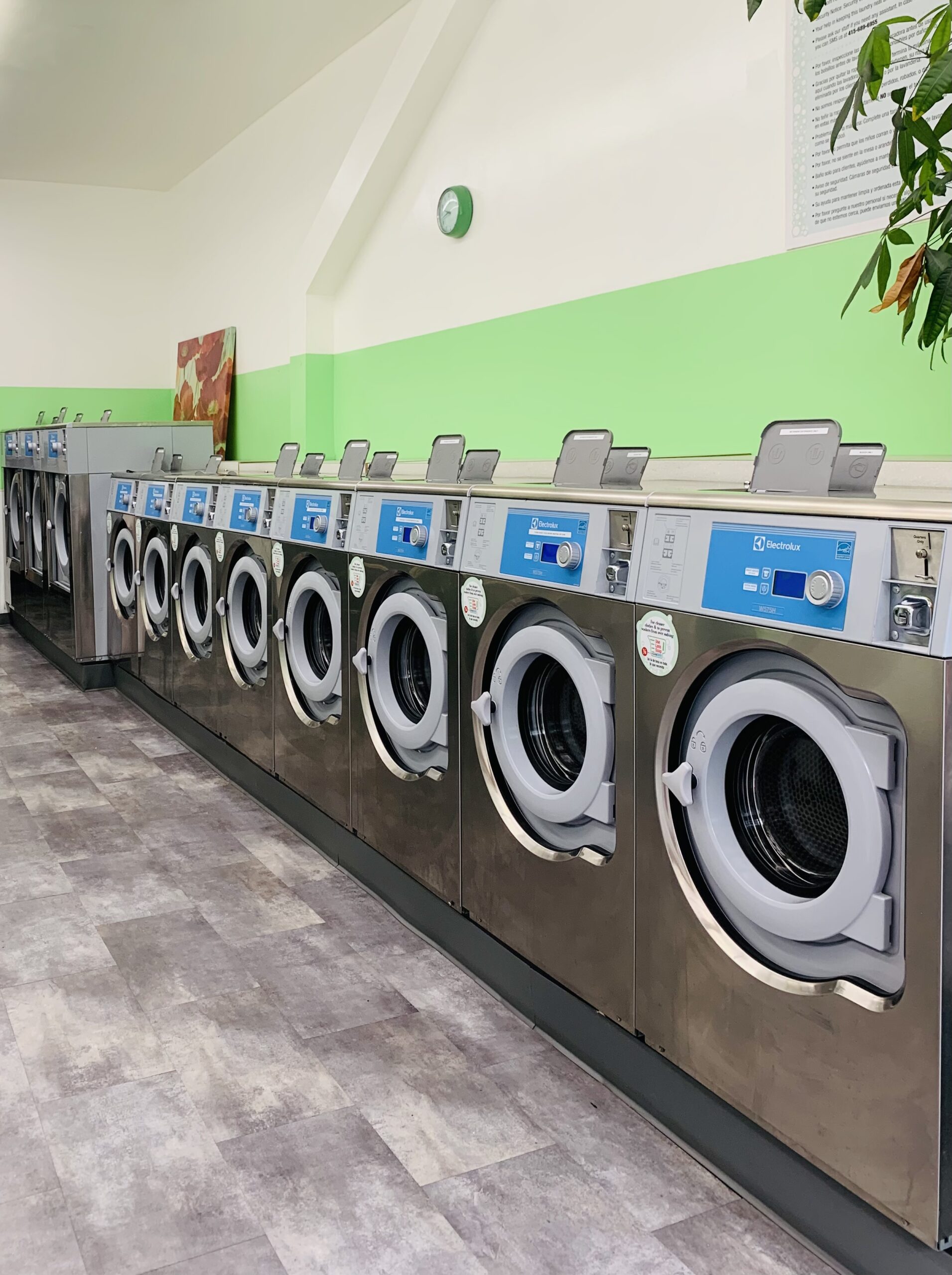 “Lots of washers and dryers. They got those big industrial washers too. The neighborhood is really nice as well. Would love to live here. There’s surveillance cameras and a big tv, an attendant, money changer, ATM and detergent vending machine.”