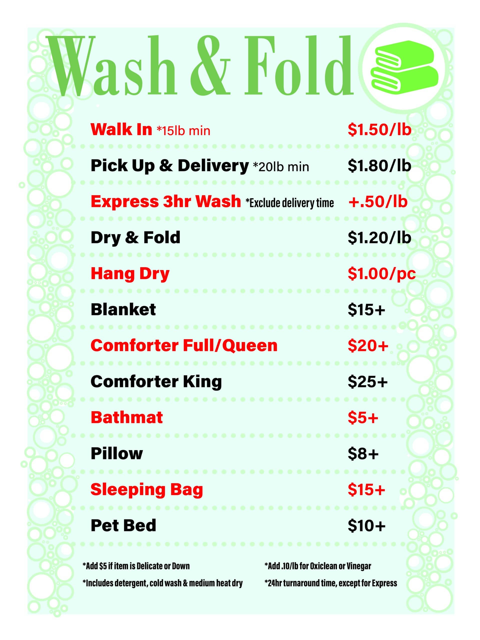 Holiday Hours for Wash & Fold: